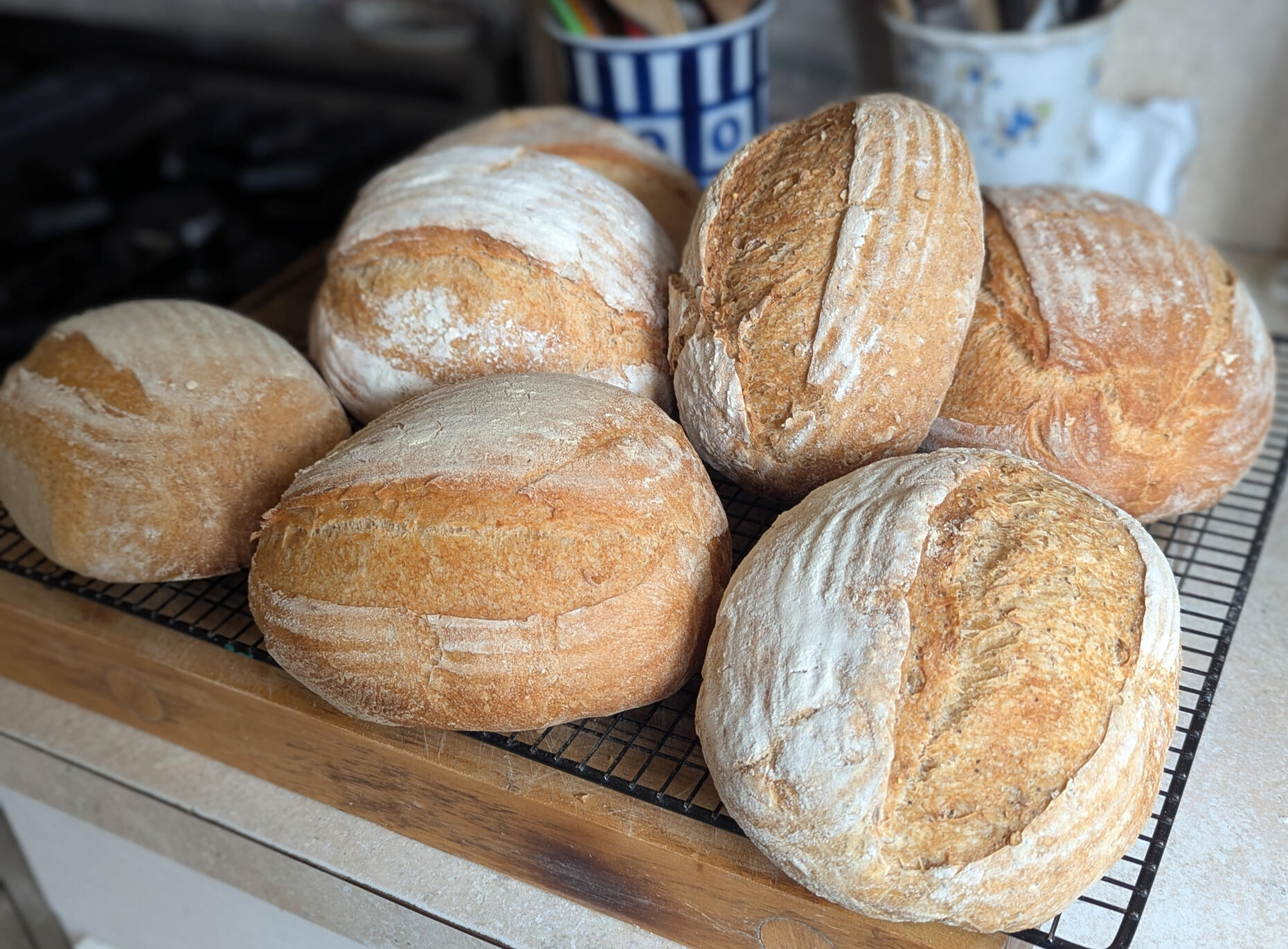 Besides baking for family and special occasions - once in a while can't resist and start a much bigger batch of dough and bake for friends. If you want to know about those bigger baking events just let me know.
